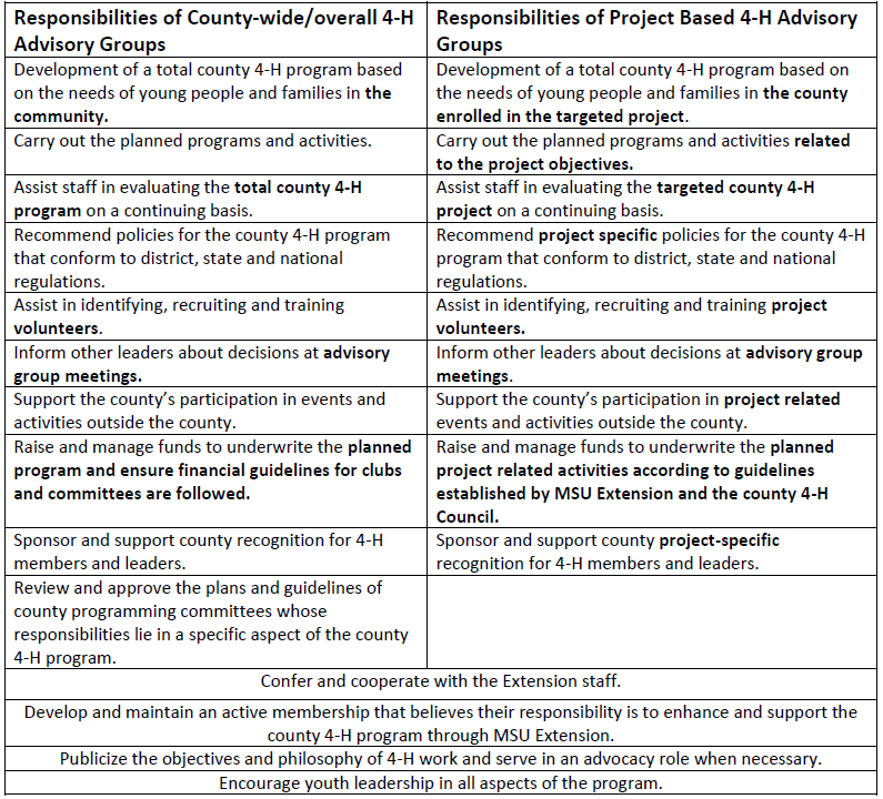 Responsibilities of Michigan 4-H Advisory Groups