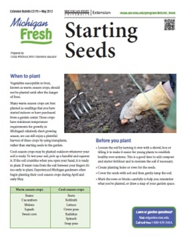 Cool-season crops may be planted outdoors whenever your soil is ready. To test your soil, pick up a handful and squeeze it. If the soil crumbles when you open your hand, it is ready to plant. If water runs from the soil between your fingers it’s too early to plant. Experienced Michigan gardeners often begin planting their cool-season crops during April and early May.