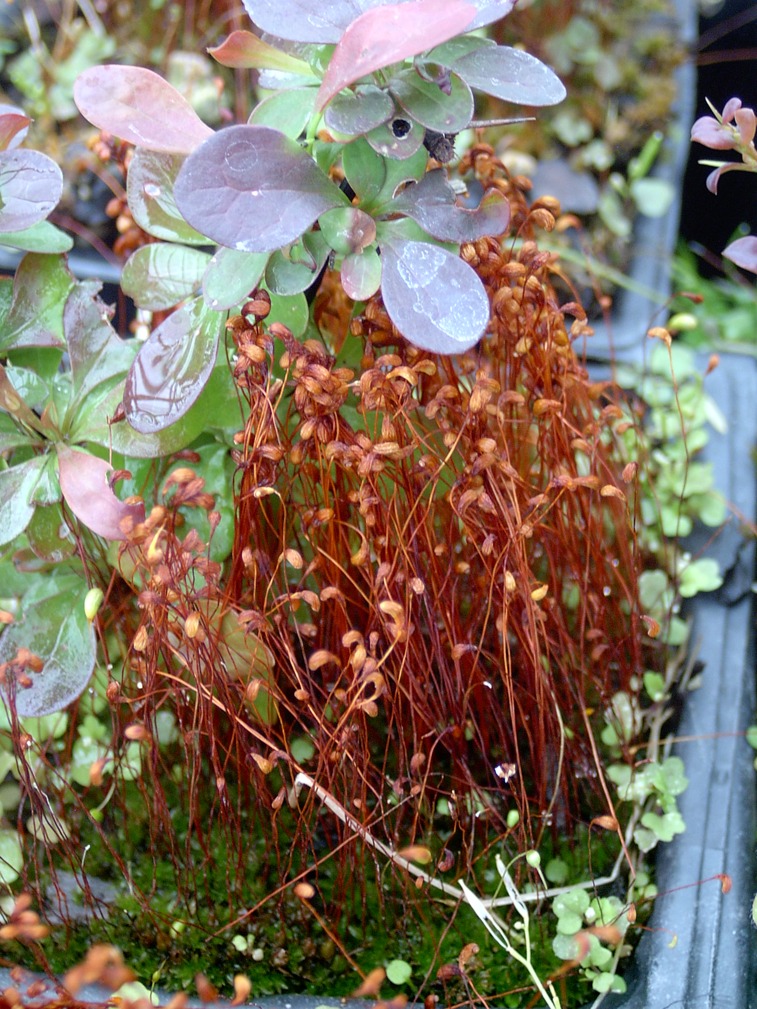 Low-growing plants with very small foliage that form dense clumps in shady, moist places. Clumps rang from dime-sized to several feet across. Some upright growth is possible, but plants usually reach only 0.25 to 1 inch in height. Plants have rootlike rhizoids, which are not true roots but have similar functions. New plants form by vegetative reproduction and by spores released from capsules at the ends of leafless stalks. No true flowers or fruit are produced.