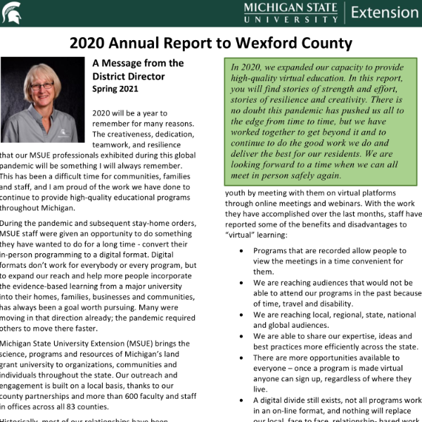 MSU Extension Wexford County Annual 2020