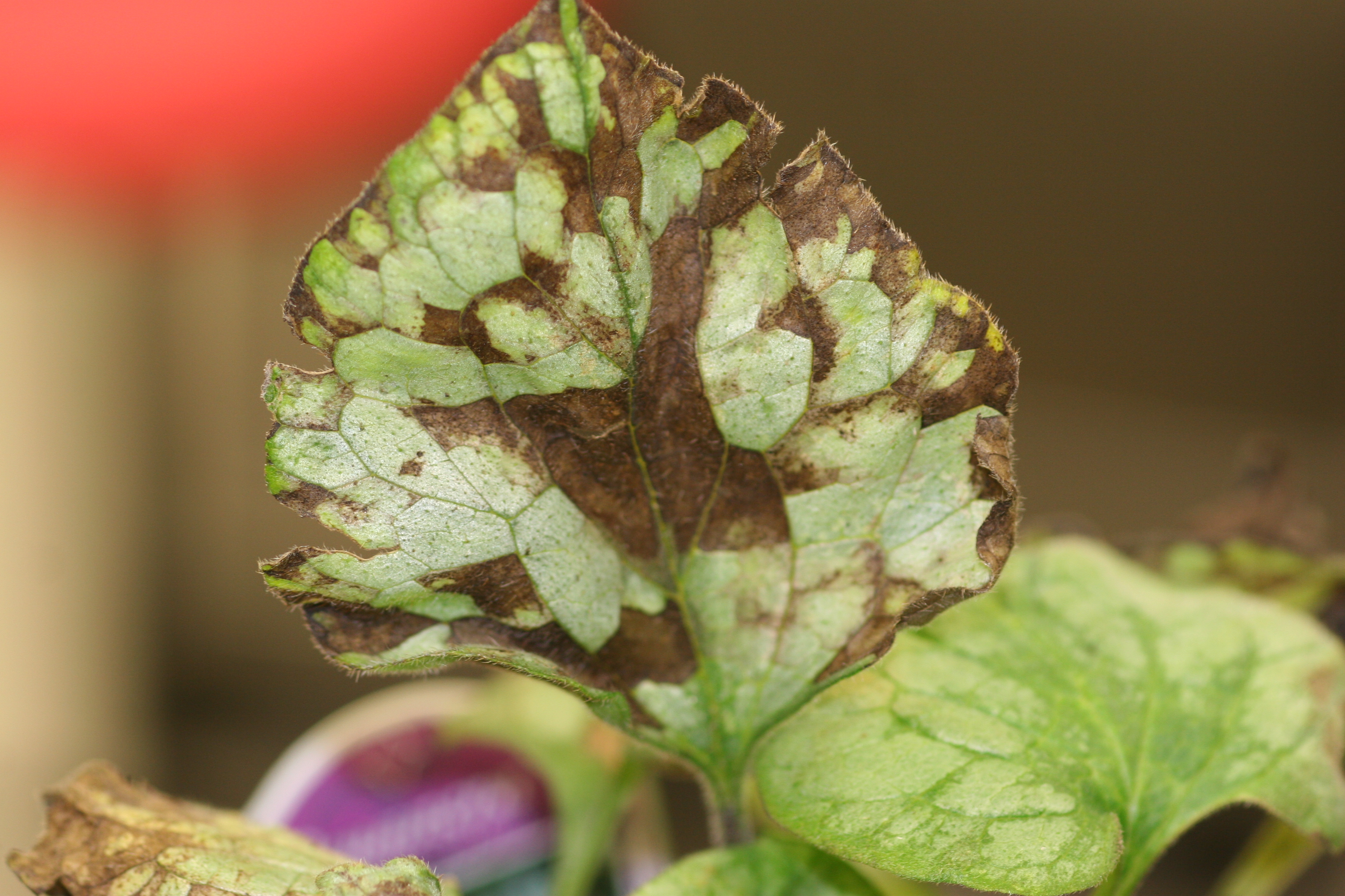 Symptoms of foliar nematodes on anemone
