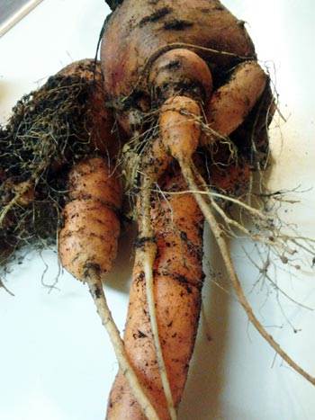 Symptoms of root-knot nematode feeding on carrot