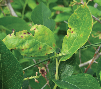 Symptoms of tomato ringspot virus on blueberry (credit Dr. Annemiek Schilder)