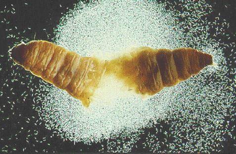 Entomophagous nematodes emerging from a wax moth larva