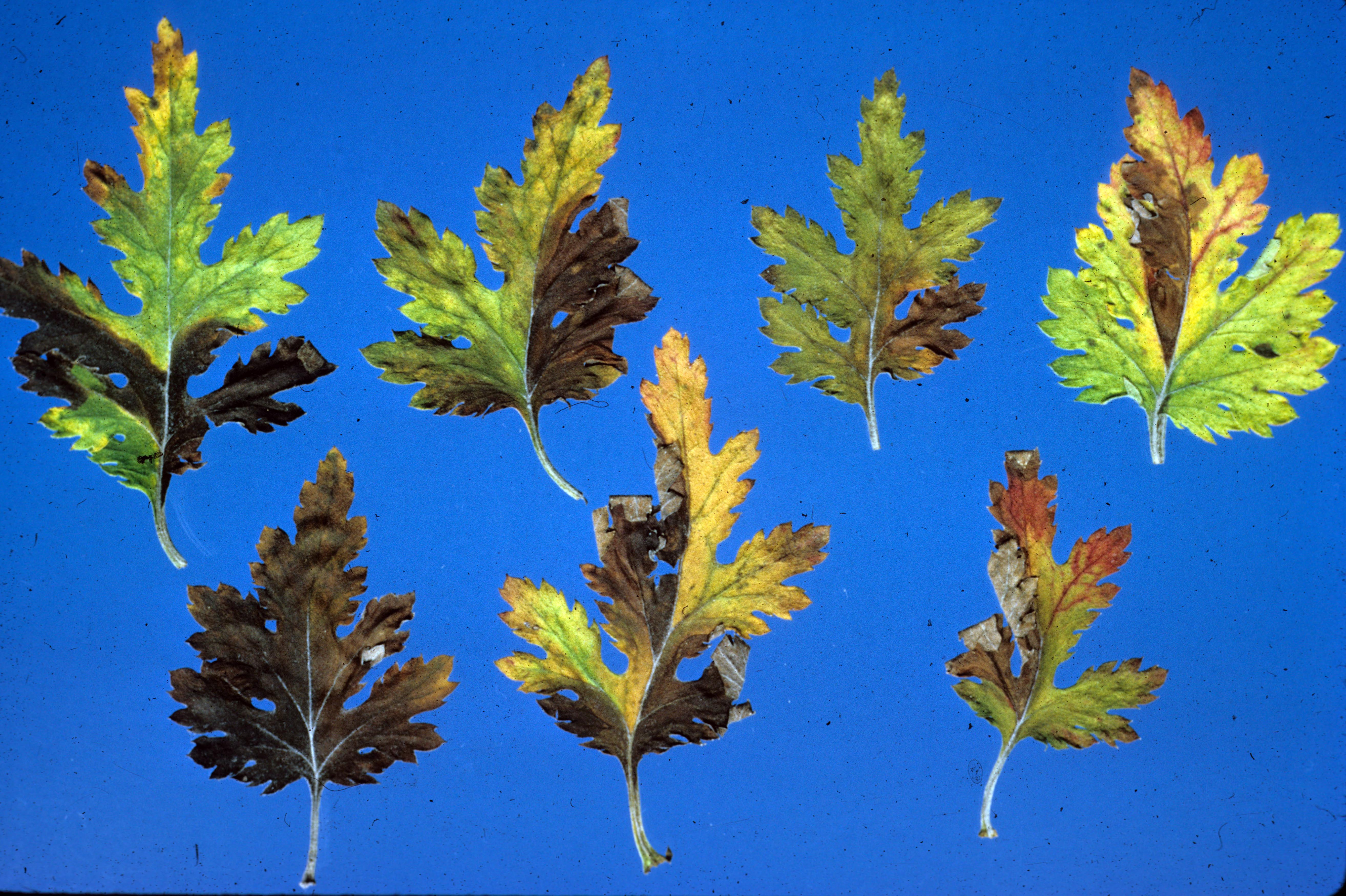 Symptoms of foliar nematodes on chrysanthemum