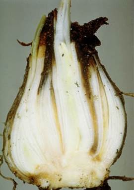 Symptoms of a stem nematode invasion of a narcissus bulb (credit forestryimages.com)