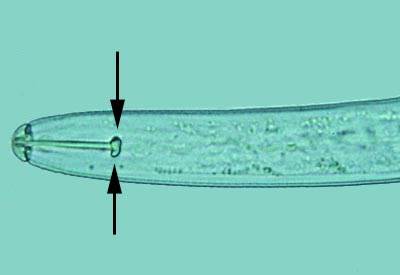 Plant-parasitic nematode with arrows pointing to the stylet