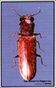 The term powderpost beetle refers to several species of wood-destroying beetles that belong to three different families of beetles (Lyctidae, Bostrichidae and Anobiidae). Their common name is derived from their fine, powdery frass (excrement) that accumulates under infested wood. Powderpost beetles are second only to termites in their ability to destroy wood in structures and furniture. They are capable of re-infesting dry, seasoned wood year after year. The interior of the wood that is repeatedly attacked is completely riddled with holes and galleries packed with the powdery frass. Powderpost beetles can infest any untreated or non-sealed wood article. Some species only attack hardwoods, while others feed only on softwoods, and some species will feed on both. Under normal conditions, powderpost beetles require about a year to complete their development. However, if the wood has a high moisture and starch content, development may be completed in 6 months. The moisture content of the wood is a very important factor in managing powderpost beetles. Wood should be maintained below 20% moisture content to reduce its suitability to powderpost beetles. Some experts believe if the wood is kept dry enough, then no insecticide application is necessary.