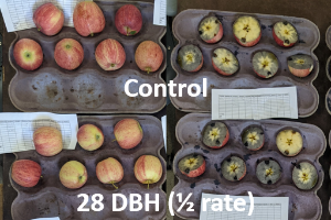 Predicted harvest dates for specific locations can be determined using the Apple Maturity Model on the Enviroweather website. These models for McIntosh, Jonathan and Red Delicious calculate predict harvest dates based on full bloom date and the temperatures in the 30 days after bloom. The model predicted dates for McIntosh appear to be much earlier and for Jonathan and Red Delicious appear to be a little later than expected. Given the weather extremes in the 30-day period used to make predictions, this is not unexpected. We have seen this before and it typically ends up being accurate. However, predicted harvest dates could be off a few days, especially due to the extended bloom and the cold weather at bloom time. Harvest dates may need to be adjusted as we get closer to harvest.