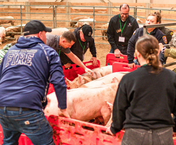 On a sunny, 50-degree day in December, a livestock semi-truck and trailer with a load of 120 pigs headed to market overturned on a two-lane highway in southern Michigan. While accidents involving animals do not happen frequently, these unexpected events can quickly turn into chaotic and dangerous situations without proper training and supplies.
