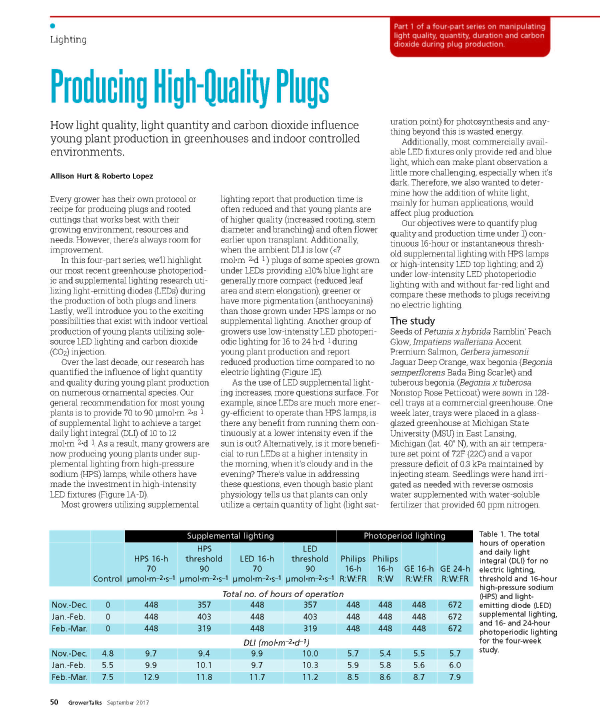 In this article, we will discuss how continuous 16-hour or instantaneous threshold supplemental lighting from HPS lamps and LEDs and photoperiodic lighting influence plug quality and subsequent flowering.