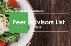 These trainings were produced by Shiloh Maples. The author would like to acknowledge the Michigan Local Food Council Network (MLFCN) coordinators team on behalf of the MSU CRFS for contributing their insight and experience to this workbook. The development of MLFCN knowledge products incorporates the expressed needs of the network members. These resources were funded by the W.K. Kellogg Foundation. Support for MLFCN comes from the W.K. Kellogg Foundation and the Michigan Health Endowment Fund.
