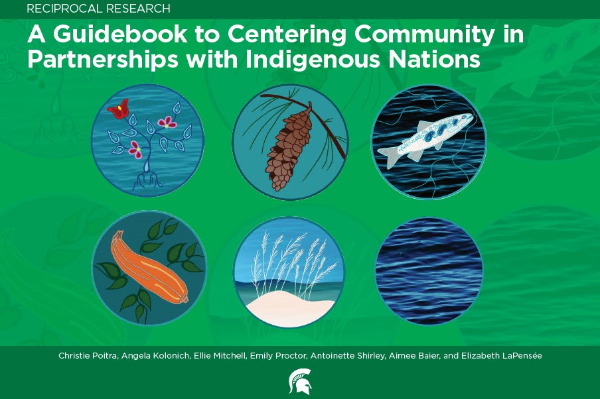 Poitra, C., Kolonich, A., Mitchell, A. E., Proctor, E., Shirley, A., Baier, A.& LaPensée, E. (2021). Reciprocal Research: A Guidebook to Centering Community in Partnerships with Indigenous Nations. East Lansing, MI: Michigan State University Native American Institute.