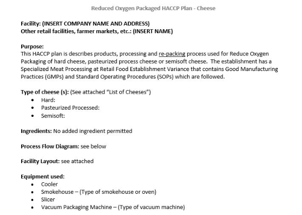 Reduced Oxygen Packaged HACCP Plan - Cheese