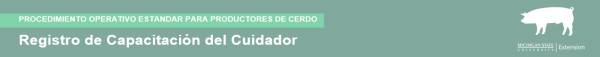 Esta hoja se usa para registrar el entrenamiento de cuidador individual en la instalación porcina.