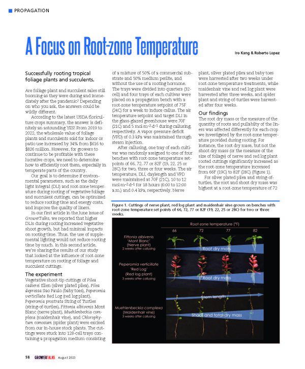 Determining how root-zone temperatures influences rooting of tropical foliage plants and succulents.