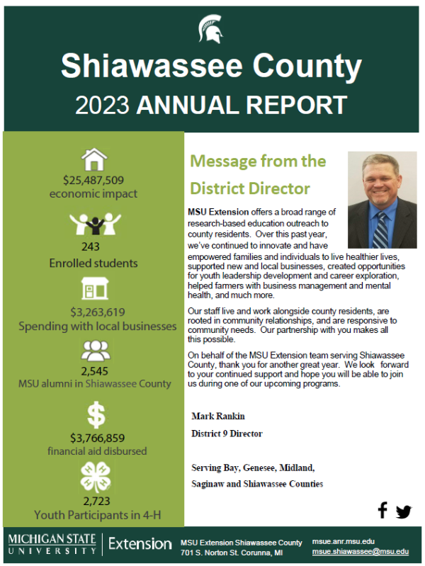 On behalf of the MSU Extension team serving Shiawassee County, thank you for another great year. We look forward to your continued support and hope you will be able to join us during one of our upcoming programs.