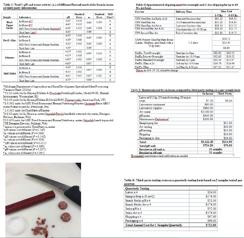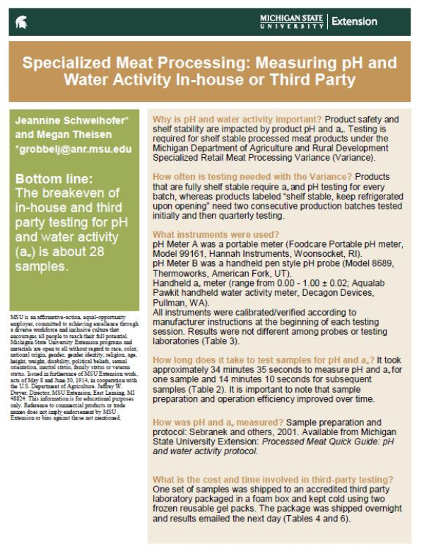 Product safety and shelf stability are impacted by product pH and aw. Testing is required for shelf stable processed meat products under the Michigan Department of Agriculture and Rural Development Specialized Retail Meat Processing Variance (Variance).