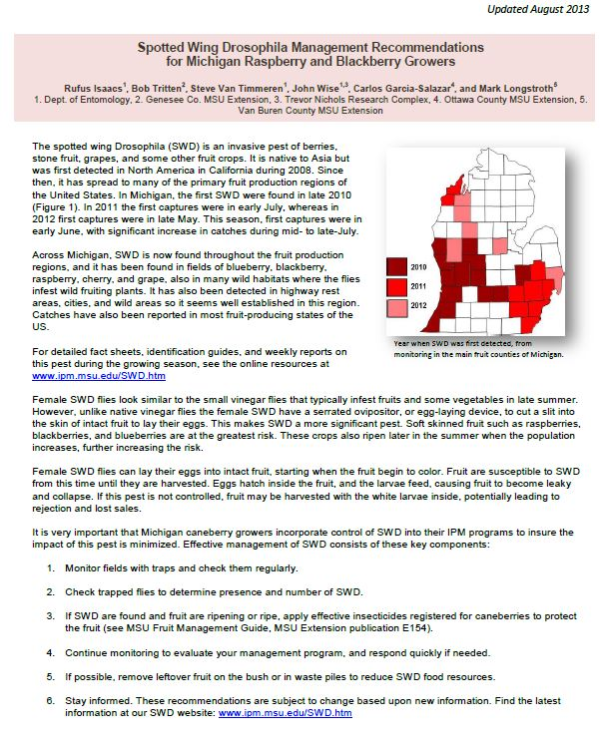 For detailed fact sheets, identification guides, and weekly reports on this pest during the growing season, see the online resources at www.ipm.msu.edu/SWD.htm