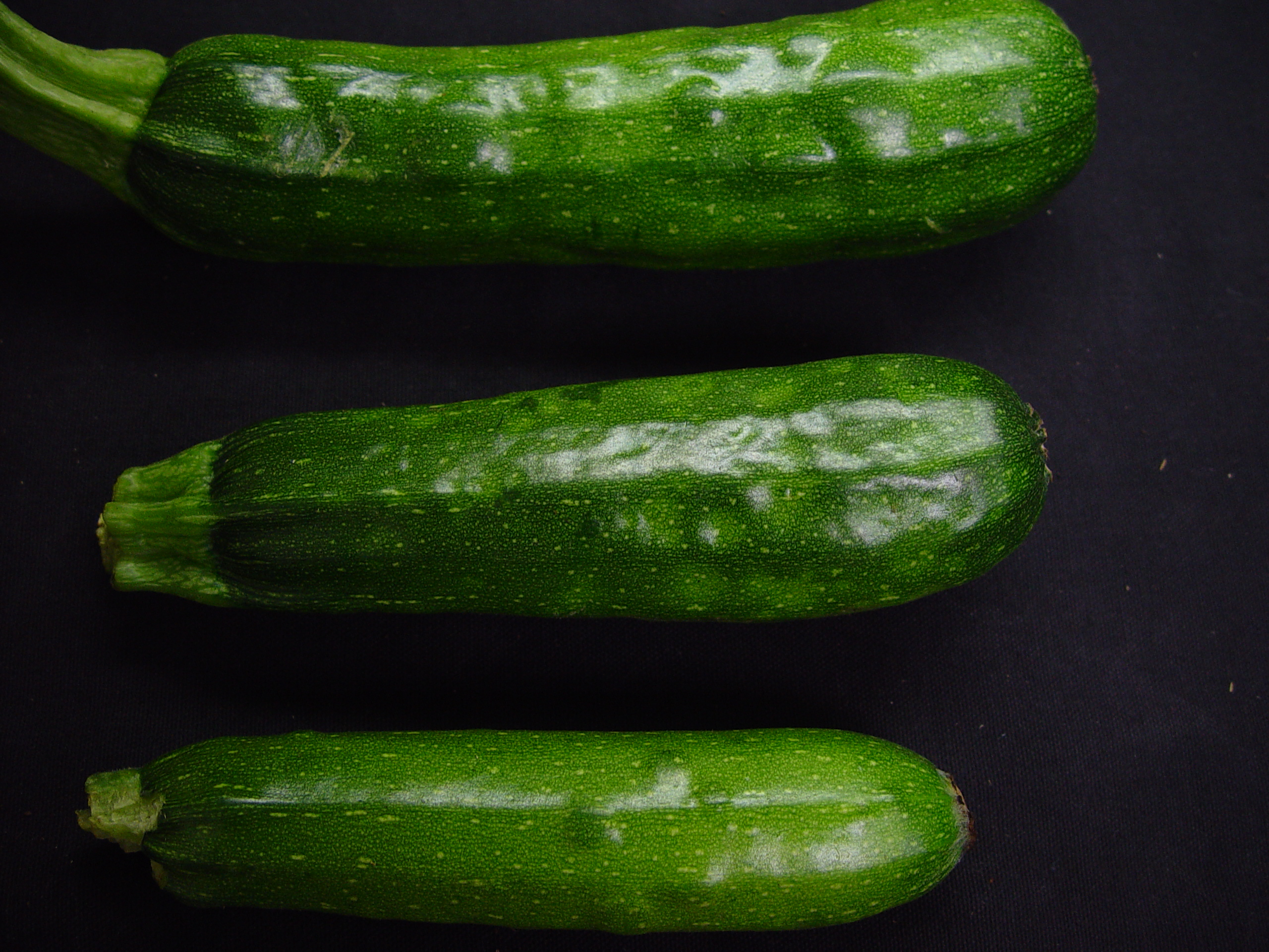 Plants infected with Squash Mosaic Virus are often stunted and produce malformed or mottled fruit. There are two different strains of the virus; strain1 is more severe on melon and milder on squash, while the reverse is true of strain 2. The host range of this virus appears to be confined to cucurbits and some members of the Chenopodiaceae. The virus can be spread by cucumber beetles and by infected seed. Beetles acquire the virus within 5 minutes of feeding on an infected host and can retain the virus for approximately 20 days. This virus has become much less prevalent as more growers have begun to use certified virus free seed. Insecticide applications to control the beetle vectors are also helpful.