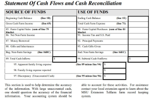 The statement of cash flows is a financial statement that summarizes the movement of cash coming in and going out of a farm business. The statement measures how well the farm generates cash to cover operating expenses and meet financial obligations (debt). A statement of cash flows is one of three main financial statements, the other two are the balance sheet and the income statement. This document uses information from the other two financial statements to summarize the cash movement within a farm business.