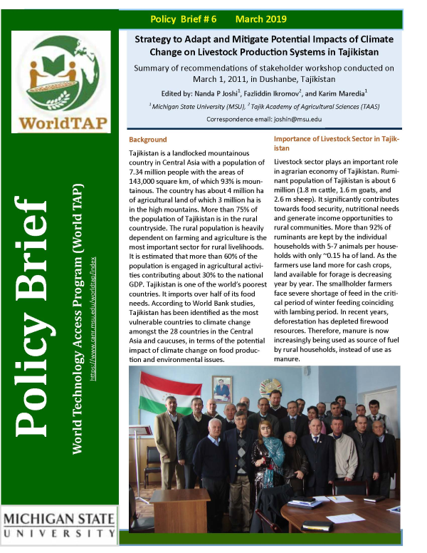 WorldTAP Policy Brief 06 - Strategy to Adapt and Mitigate Potential Impacts of Climate Change on Livestock Production Systems in Tajikistan