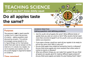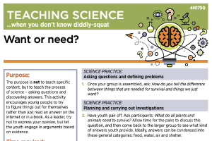 The purpose is not to teach specific content, but to teach the process of science – asking questions and discovering answers. This activity encourages young people to try to figure things out for themselves rather than just read an answer on the internet or in a book. As a leader, try not to express your opinion, but let the youth engage in arguments based on evidence.
