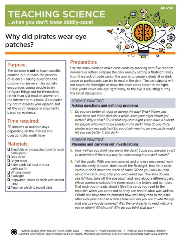 Teaching science when you don’t know diddly: Why did pirates wear eye patches?