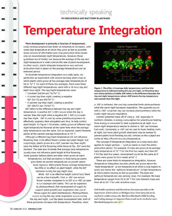 Plants integrate and respond to temperature over an extended period, and not just the day or night temperature.