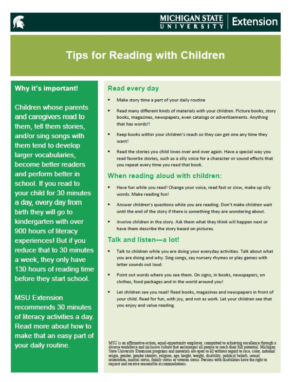 MSU Extension recommends 30 minutes of literacy activities a day. Read more about how to make that an easy part of .your daily routine.