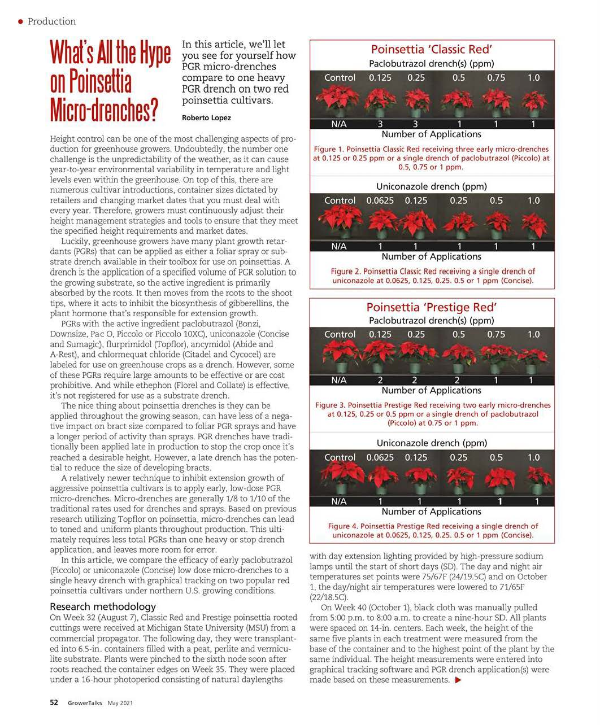 How do PGR micro-drenches compare to one heavy PGR drench on two red poinsettia cultivars?