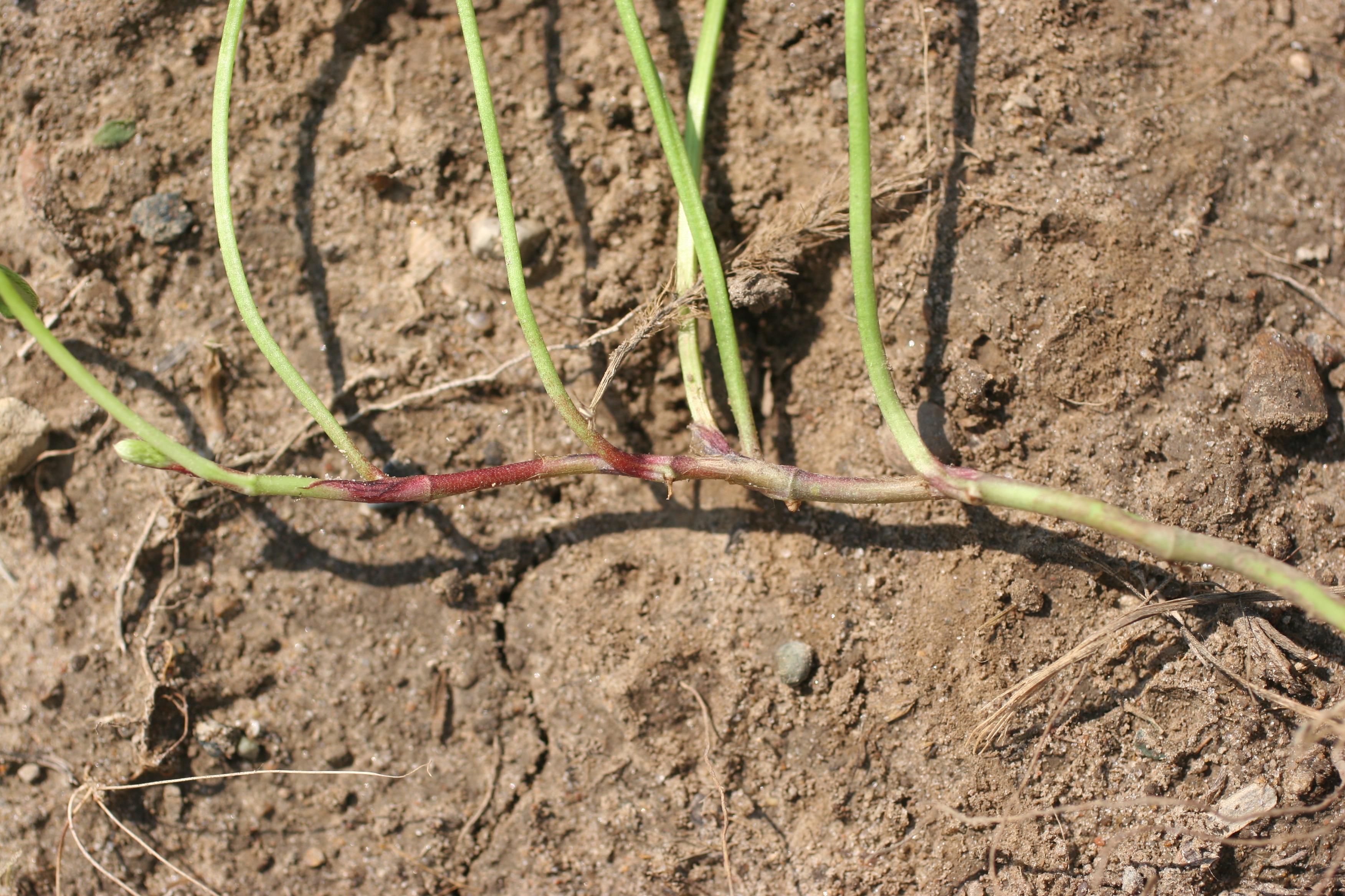 Plants spread by prostrate, creeping stolons that root at the nodes and are generally smooth.