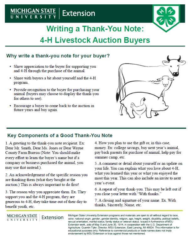 Writing a Thank-You Note: 4-H Livestock Auction Buyers
