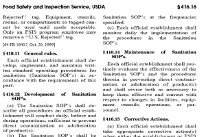 FSIS shall verify the adequacy and effectiveness of the Sanitation SOP’s and the procedures specified therein by determining that they meet the requirements of this part. -