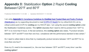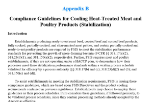 I am using Appendix B: Compliance Guidelines for Cooling Heat-Treated Meat and Poultry Products (Stabilization) as my supporting document to meet 9 CFR 417.5(a)(2) for my critical limit (CL) at my critical control point (CCP) for cooling per my HACCP plan.