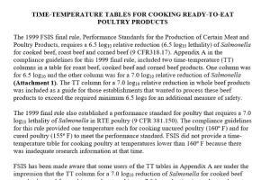TIME-TEMPERATURE TABLES FOR COOKING READY-TO-EAT POULTRY PRODUCTS