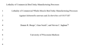 Lethality of Commercial Beef Jerky Manufacturing Processes