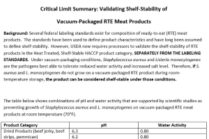 Critical Limit Summary: Validating Shelf‐Stability of Vacuum‐Packaged RTE Meat Products