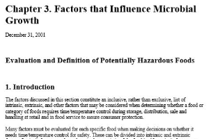 The factors discussed in this section constitute a list of intrinsic, extrinsic, and other factors that may be considered when determining whether a food or category of foods requires time/temperature control during storage to assure consumer protection.