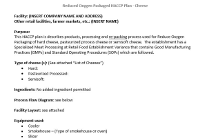 Reduced Oxygen Packaged HACCP Plan - Cheese