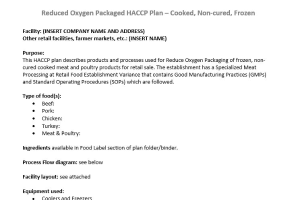 Reduced Oxygen Packaged HACCP Plan - Cooked, Non-cured, Frozen