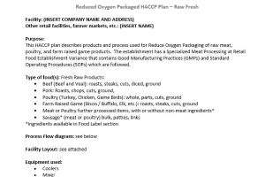 This HACCP plan describes products and process used for Reduce Oxygen Packaging of raw meat, poultry, and farm raised game products. -