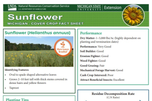 Sunflower is a quick-growing warm season annual broadleaf cover crop with deep roots that improve soil compaction and scavenge soi nutrients. Sunflowers are great additions to multi-species cover crop mixes. -