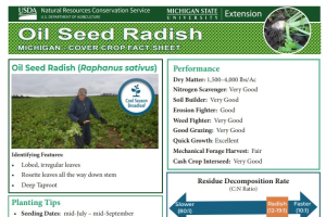 Oilseed radish is a quick-growing cool-season annual brassica cover crop. The long taproot helps improve soil compaction and scavenges nitrogen from the soil. -