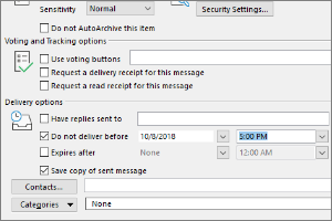 Instructions on how to set up and email to send in the future in Outlook for Windows. -