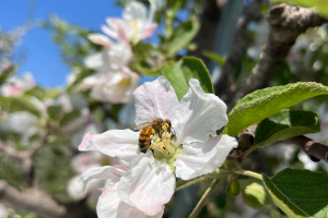 Como las abejas llegan a las explotaciones frutícolas durante la floración, los agricultores pueden proteger a los polinizadores y minimizar la exposición a los pesticidas.