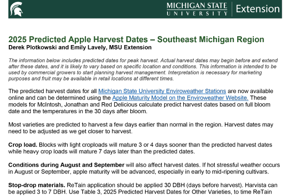 2025 Predicted Apple Harvest Dates – Southwest Michigan Region