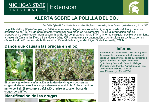 New box tree moth alert for Michigan homeowners and residents, now available in English and Spanish