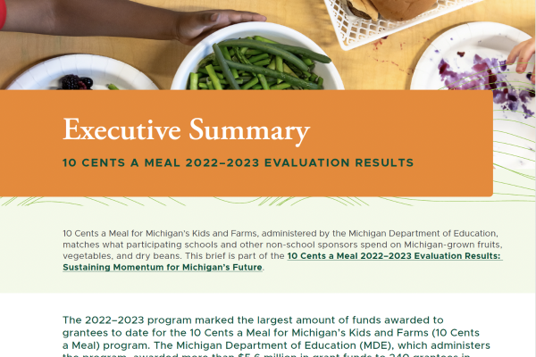 Sustaining Momentum for Michigan's Future: 10 Cents a Meal 2022–2023 Evaluation Results