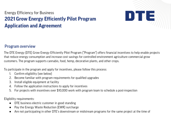 DTE Energy Grow Energy Efficient Pilot Program Application and Agreement